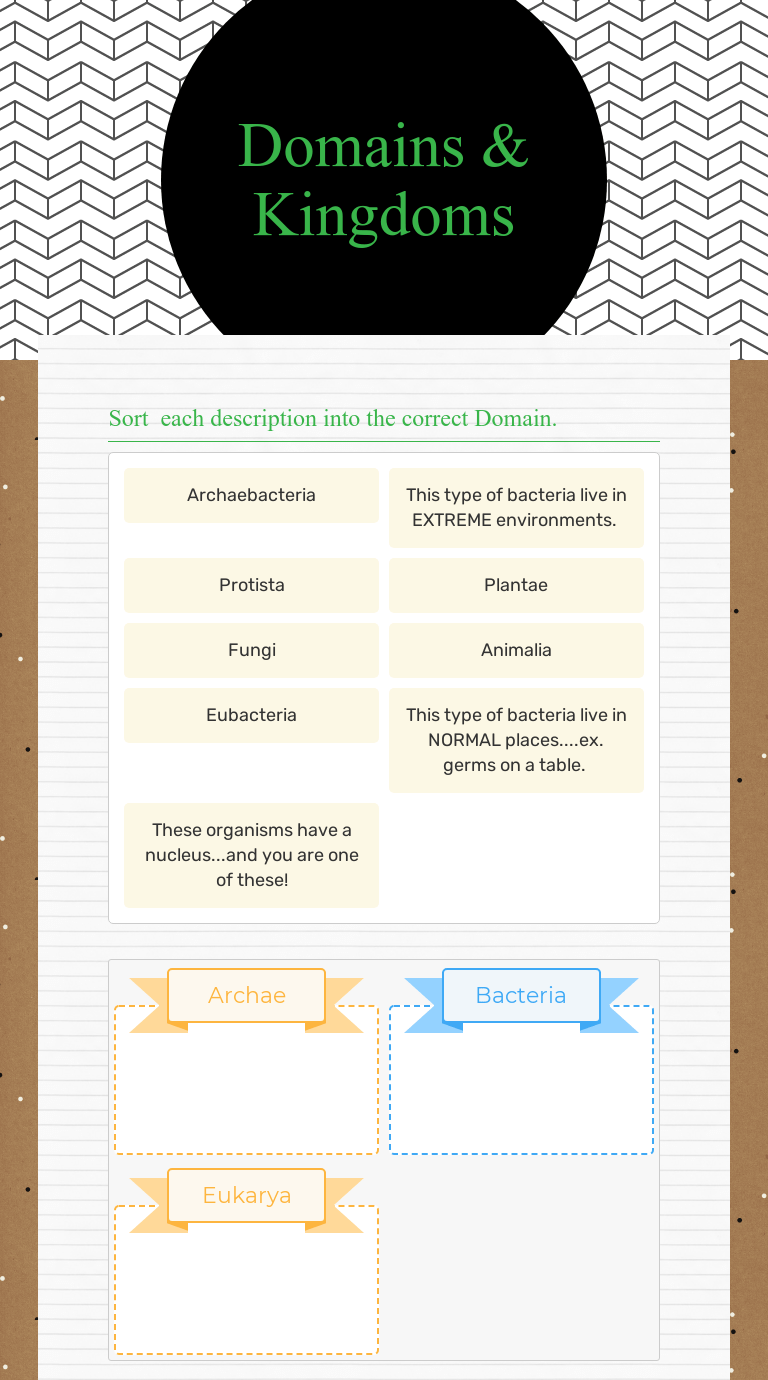 Domain, kingdom, phylum, class, order, family, genus. This worksheet is great for helping . This two page editable worksheet goes with the six kingdoms and three domains of life powerpoint. This section describes the six kingdoms of life as they are now identified. You can do the exercises online or download the worksheet as pdf.